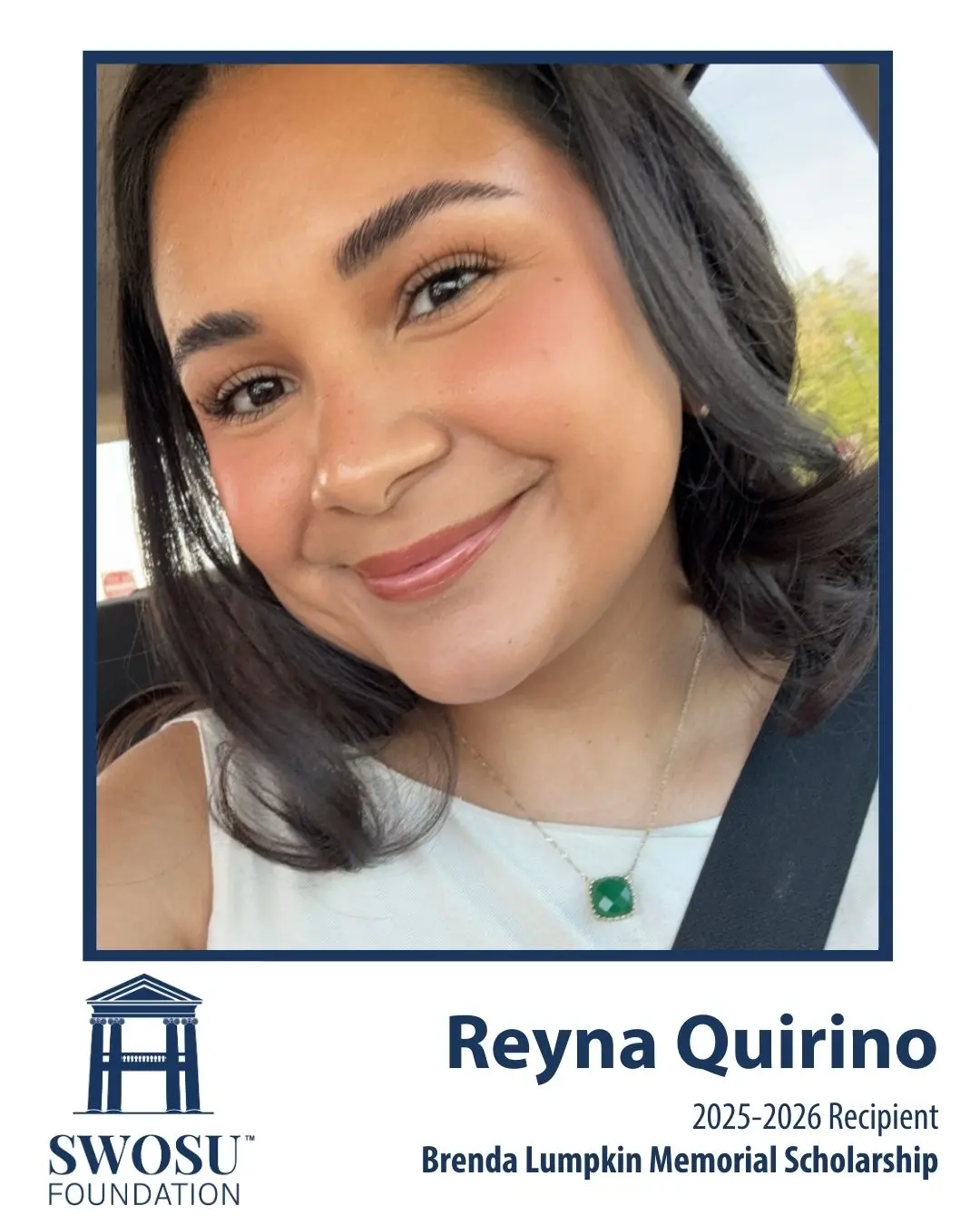 Southwestern Oklahoma State University (SWOSU) has named Reyna Quirino of Childress, Texas as the Brenda Lumpkin Scholar for the 2025-26 Academic Year. Quirino is a
