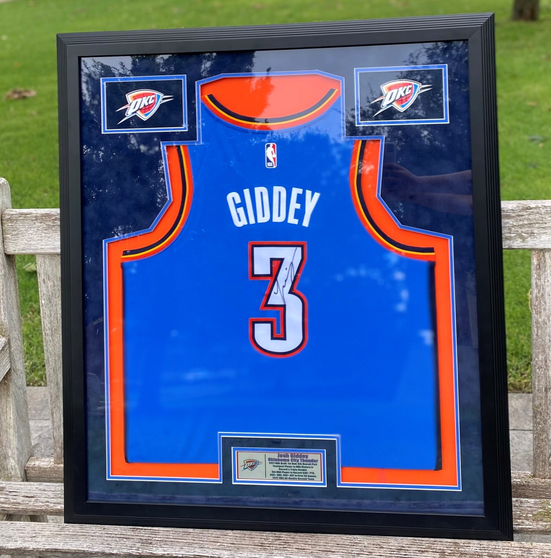 Thunder fans can bid on this official OKC Thunder jersey signed by NBA star, Josh Giddey! Giddey is the youngest player in NBA history to record a triple-double which he did at just nineteen-years-old.